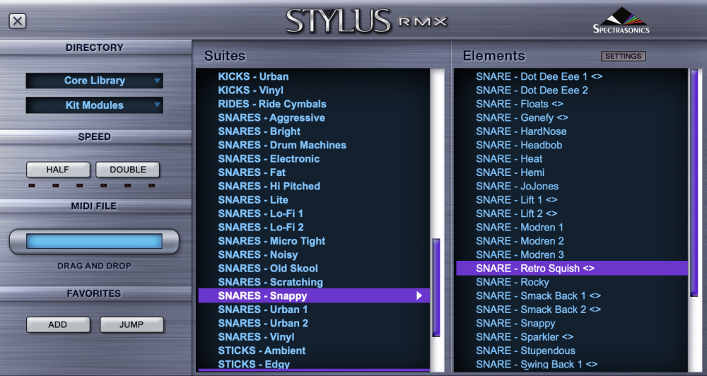 Kit Suites are directories that contain different categories of sounds which are called Kit Modules. There are 8 categories of Kit Suites and Modules: