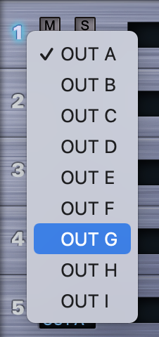 If your host supports multiple outputs, an alternate output for the Part may be chosen from the drop-down menu. The Output Assignment routes the audio for the Part’s Main Edit Group.