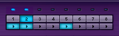 The eight numbered buttons labeled “1~8” are the Part Selection buttons for each of Stylus RMX’s 8 Parts. These buttons let you choose which Part you are currently editing. The active Part is highlighted in Blue.