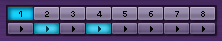Whichever Mixer Strip Number is lit up is the current active Part. To make a different Part active, click on another Channel’s Number.