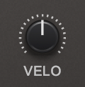 VELO is short for Velocity Sensitivity and is available for the AMP and FILTER envelopes. The Velocity knob controls how much MIDI velocity will affect the output signal of the Envelope. Moving the knob clockwise increases the dynamic sensitivity of the envelope, and moving it counter-clockwise decreases the sensitivity. This control is duplicated as a fader in the AMP and FILTER tabs in the Filter Zoom.