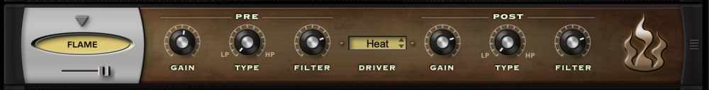 FLAME is an extremely versatile distortion unit capable of anything from mild tube overdrive to nasty bit-crushing and radical fuzzbox effects. The Driver has many different types of waveshaping types and the unique structure of not only pre/post gain, but pre and post filtering with mixable LP / HP filters on each side of the Drive circuit—all of which makes for a killer distortion processor!