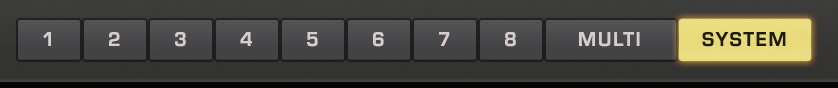 Selecting the SYSTEM button opens the System Page, which contains preferences and settings for the entire plug-in.