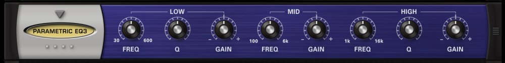 The Parametric 3-Band EQ has the benefit of precision frequency control, with three fully sweepable, overlapping bands. This type of EQ is best suited for “surgical” equalization, particularly in pinpoint cutting or reducing of an undesirable frequency in the source audio.