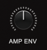 The AMP ENV (Amplitude Envelope) knobs control how much the Amplitude Envelope is affected by the Velocity Curve in each Layer. The lower the setting, the less effect velocity will have on the output of the Amplitude Envelope.