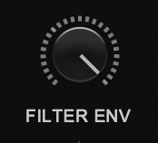 The FILTER ENV (Filter Envelope) knobs controls how much the Filter Envelope is affected by the Velocity Curve in each Layer. The lower the setting, the less effect velocity will have on the output of the Filter Envelope.