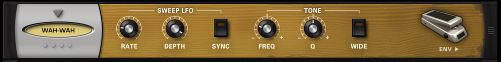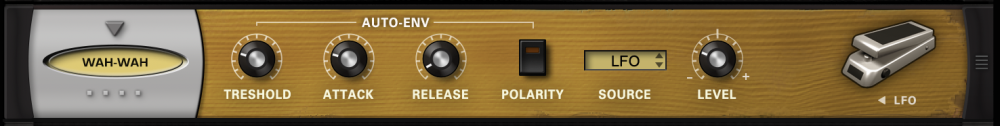 Drop-down menu that allows a choice between LFO and AUTO-ENV as the source of the wah-wah modulation.